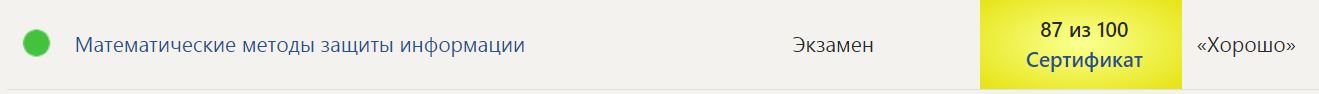 Ответы на тесты Математические методы защиты информации Синергия. Результат 87