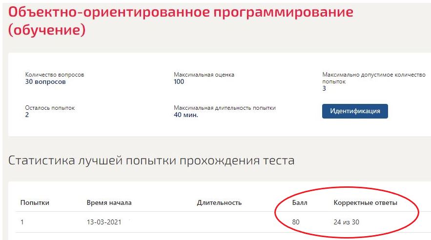 100 ответов на тест. Оценка 80/100 баллов - Хорошо