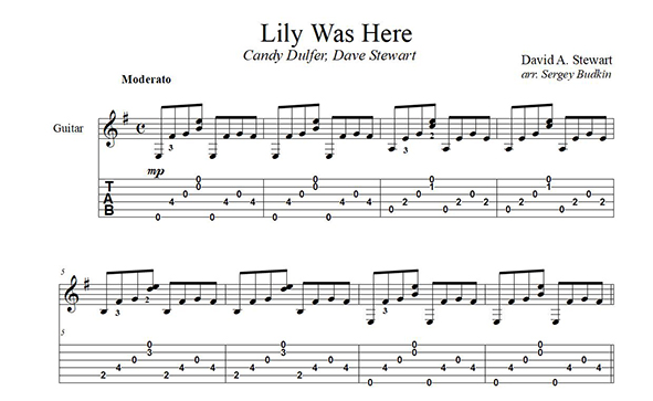 Аранжировка для гитары соло инструментальной композиции Дэвида Стюарта.
