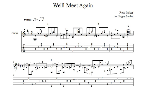Аранжировка для гитары известной песни Росса Паркера времен Второй мировой войны.