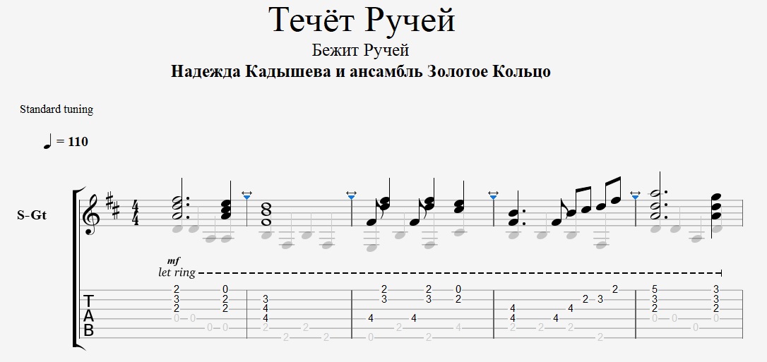 Ноты и табулатура к песне Надежды Кадышевой Течёт Ручей