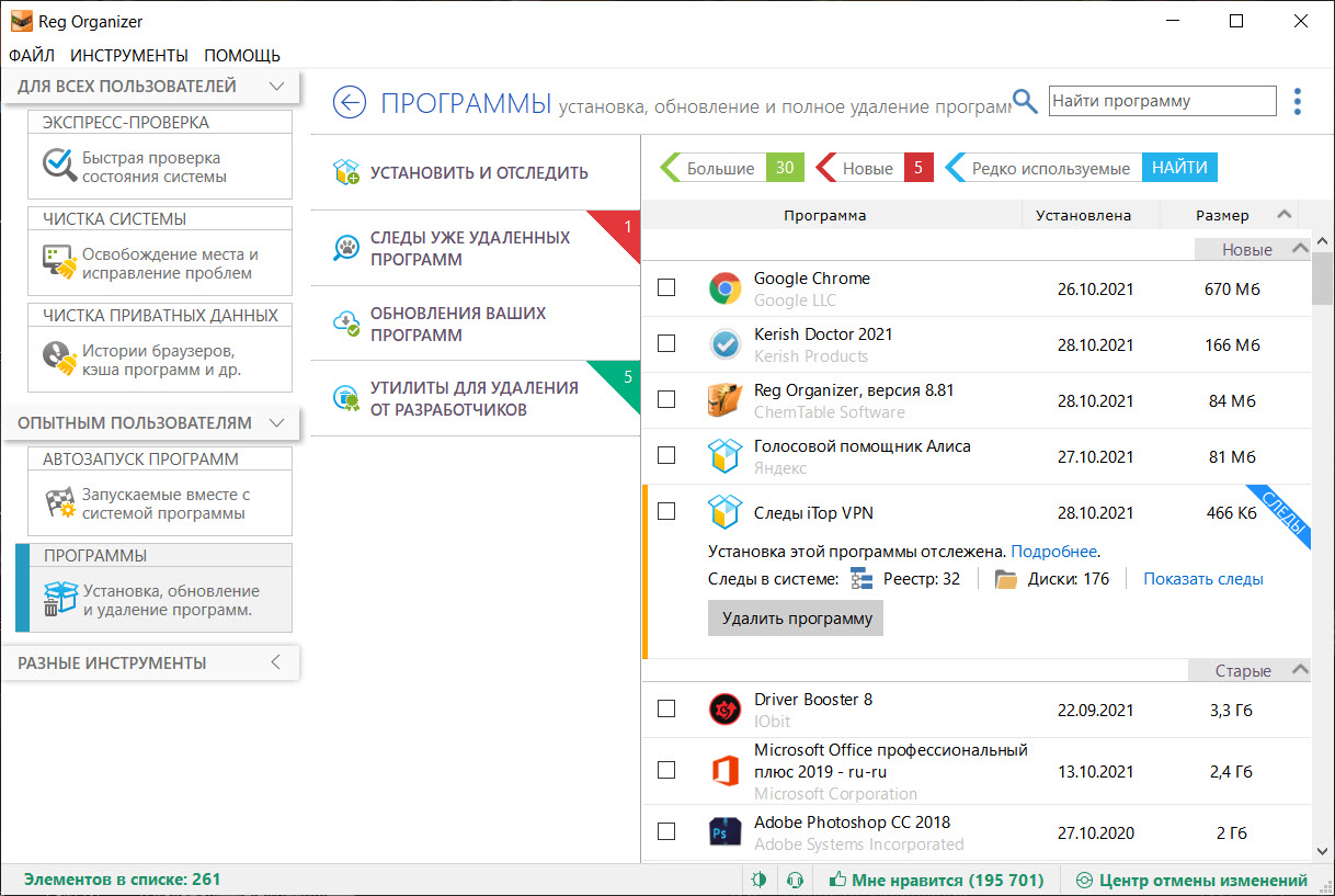 Kerish Doctor 2023 почти ежедневно обновляет алгоритмы исправления ошибок и очистки компьютера от цифрового "мусора" при доступе к сети Интернет.