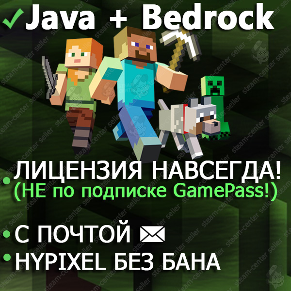 • Аккаунт от "Minecraft Java Edition + Bedrock Edition" (логин:пароль)