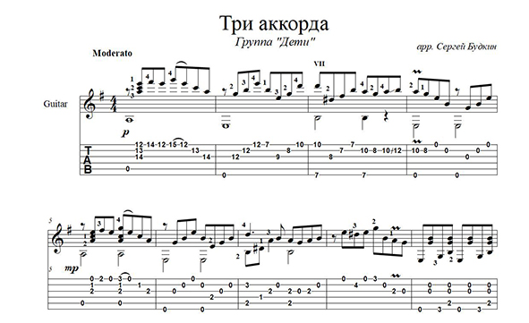 Аранжировка для гитары песни группы "Дети".