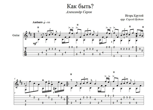 Аранжировка для гитары песни Игоря Крутого из кинофильма "Сувенир для прокурора", где ее исполнил Александр Серов.