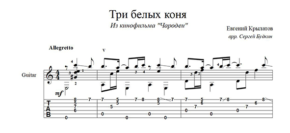 Аранжировка для гитары песни Евгения Крылатова из кинофильма "Чародеи".