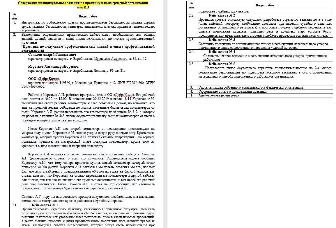 Кейс выполнен по данному заданию. Содержание индивидуального задания на практику в коммерческой организации или ИП (После покупки вы получаете ответы на Кейсы, с договором)