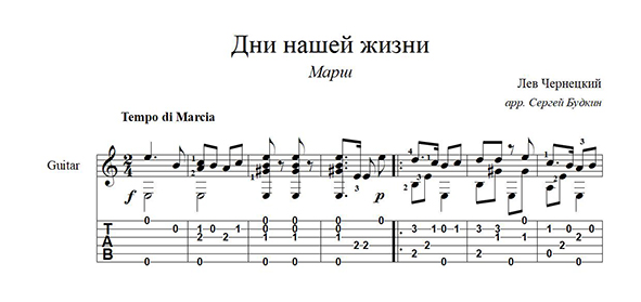 Аранжировка для гитары старинного марша Льва Чернецкого времен Первой Мировой войны. На мотив этого марша в народе родилась песенка "По улице ходила большая крокодила..."