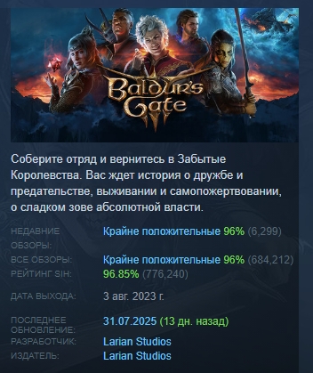 Соберите отряд и вернитесь в Забытые Королевства. Вас ждет история о дружбе и предательстве, выживании и самопожертвовании, о сладком зове абсолютной власти. Ваш мозг стал вместилищем для личинки иллитида, и она пробуждает в вас таинственные, пугающие способности. Сопротивляйтесь паразиту и обратите тьму против себя самой – или же безоглядно отдайтесь злу и станьте его воплощением. Встречайте ролевую игру нового поколения от создателей Divinity: Original Sin 2 в мире Dungeons and Dragons.