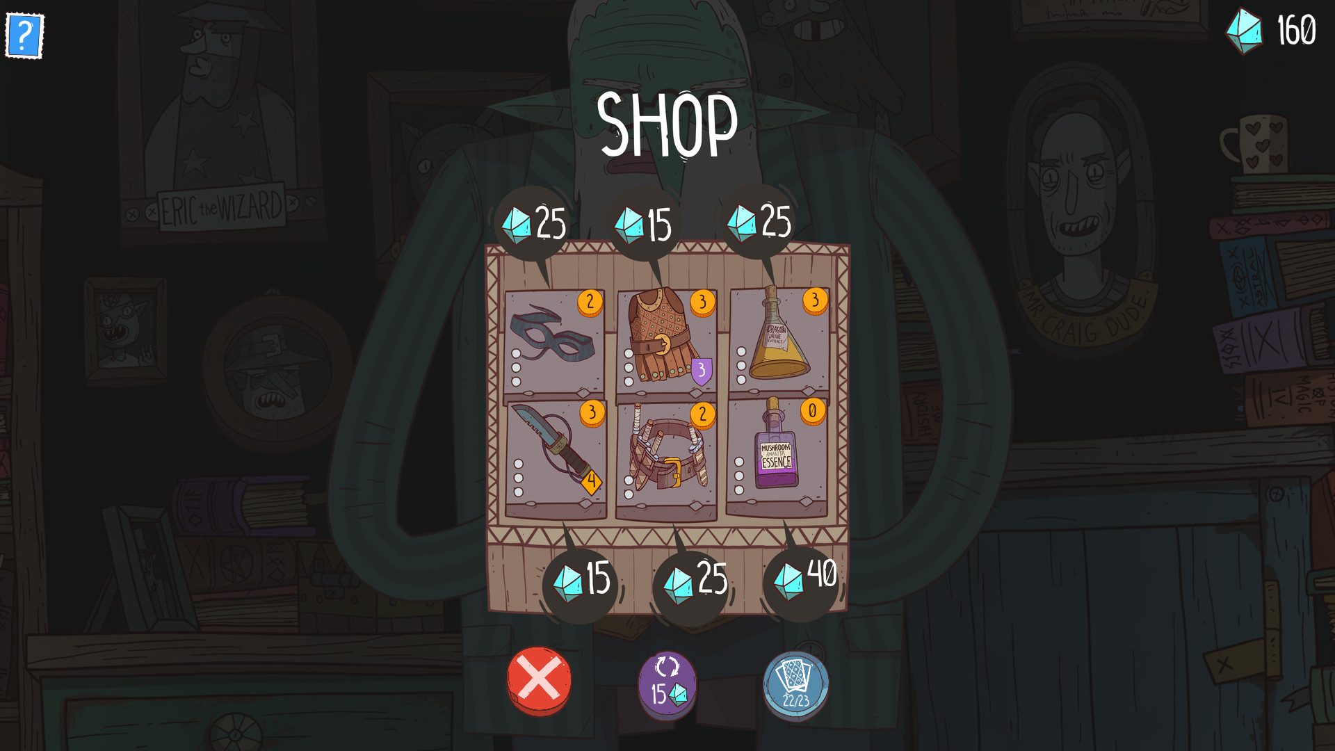 Используйте ваши карточки, чтобы зачистить подземелья, а затем улучшите колоду новыми карточками и перками.