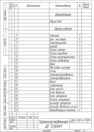 - Термопластавтомат ДЕ 3330Ф1. Чертеж общего вида (КОМПАС-3D)