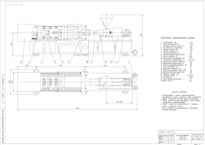 - Термопластавтомат BLW 248. Чертеж общего вида (КОМПАС-3D)