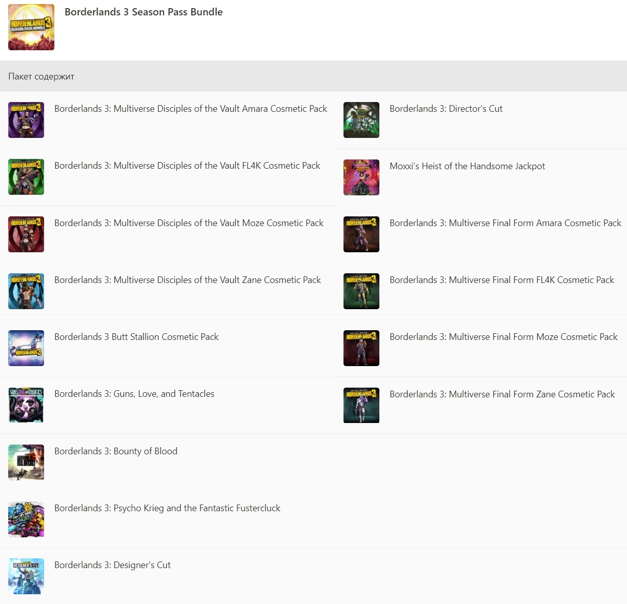 Включает в себя содержимое 1-го и 2-го сезонных абонементов для Borderlands 3.