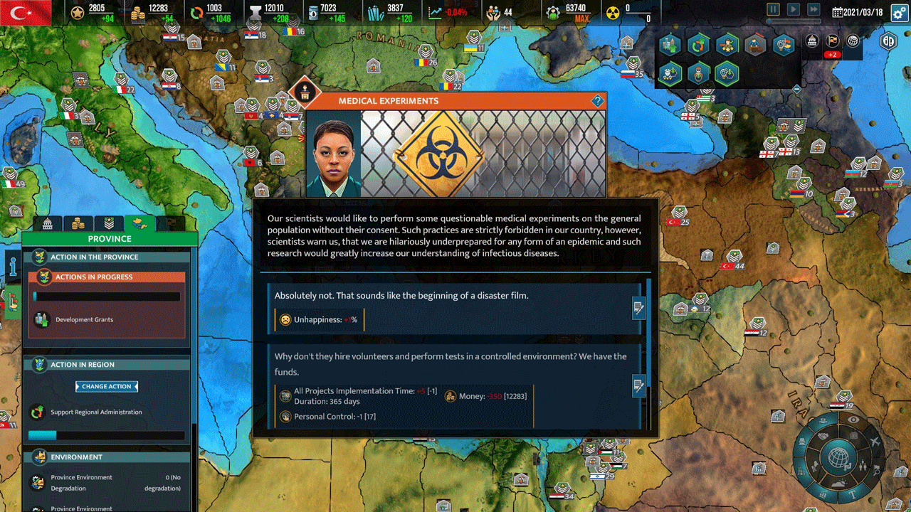 В игре более 1000 новых событий, от незначительных провинциальных вопросов до угрожающего всему миру удара метеорита. Мир постоянно меняется, каждое прохождение будет отличаться от предыдущего. Каждая из 3 кампаний ни раз удивит вас непредсказуемыми событиями.
