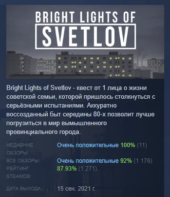 https://store.steampowered.com/app/1630920/Bright_Lights_of_Svetlov/