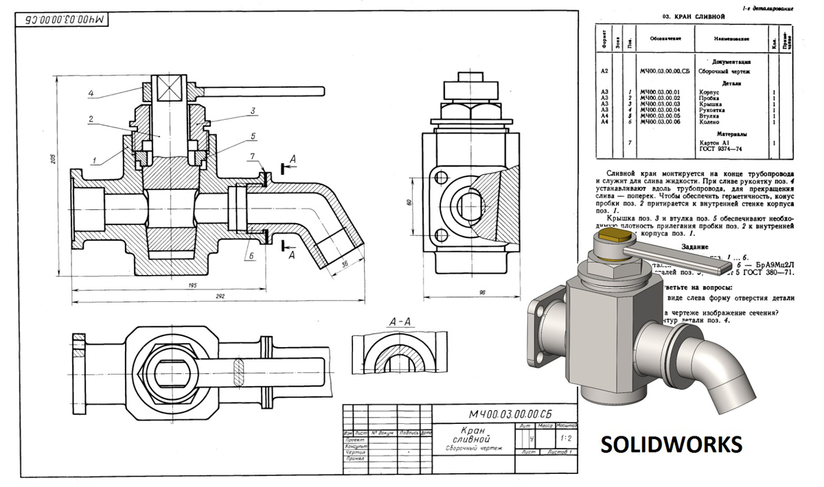 Кран сливной МЧ00.03.00.00 3d solidworks