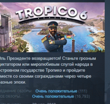 В трудную минуту, в час политических волнений и смуты, народ призывает мудрых руководителей, которые уверенно поведут страну за собой в светлое будущее. Станьте грозным диктатором или миролюбивым слугой народа в островном государстве Тропико и пройдите вместе со своими согражданами через четыре разные эпохи. Вас ждут новые вызовы на международной арене, но не стоит забывать и о собственном народе.