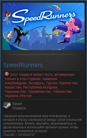 "В городе, полном супергероев, прибыть к месту преступления - само по себе соревнование. К счастью, на пути есть достаточно ракет, бомб, крюков-кошек, шипов и других прелестей. Добро пожаловать в SpeedRunners!