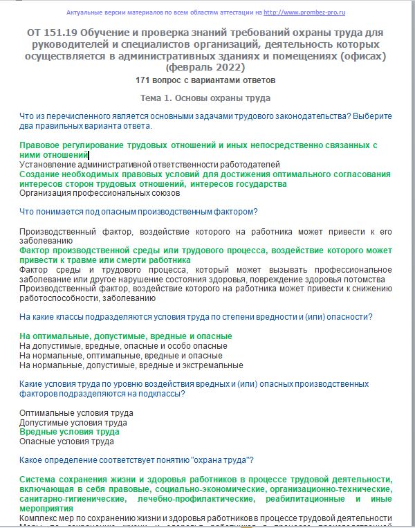 Вопросы с ответами к курсам ОКС-Олимп ОТ 151.19 (январь 2022) Обучение и проверка знаний требований охраны труда для руководителей и специалистов организаций, деятельность которых осуществляется в административных зданиях и помещениях (офисах)