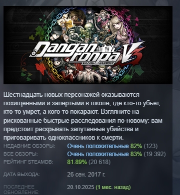Шестнадцать новых персонажей оказываются похищенными и запертыми в школе, где кто-то убьет, кто-то умрет, а кого-то покарают. Взгляните на рискованные быстрые расследования по-новому: вам предстоит раскрывать запутанные убийства и приговаривать одноклассников к смерти.