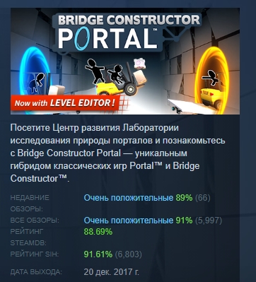 Посетите Центр развития Лаборатории исследования природы порталов и познакомьтесь с Bridge Constructor Portal — уникальным гибридом классических игр Portal™ и Bridge Constructor™.