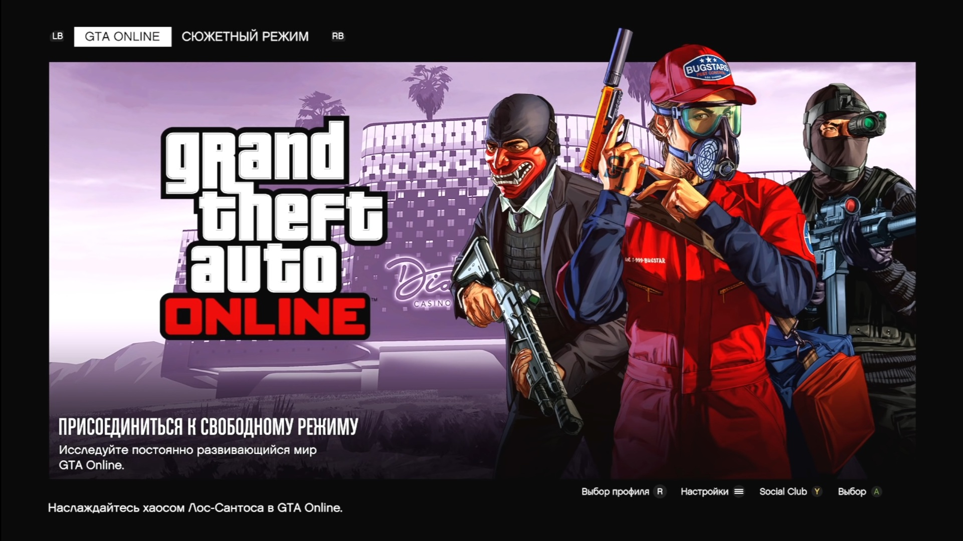 В неё уже входит как сюжетный режим GTA V, так и непосредственно онлайн. Переключение происходит в главном меню.