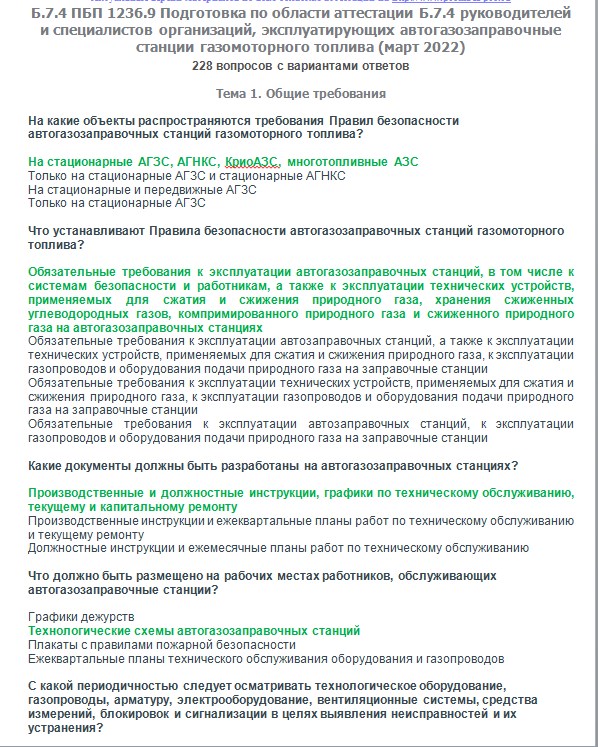 Вопросы с ответами к курсам ОКС-Олимп Б.7.4 ПБ 1236.9 (март 2022) Эксплуатация автогазозаправочных станций газомоторного топлива