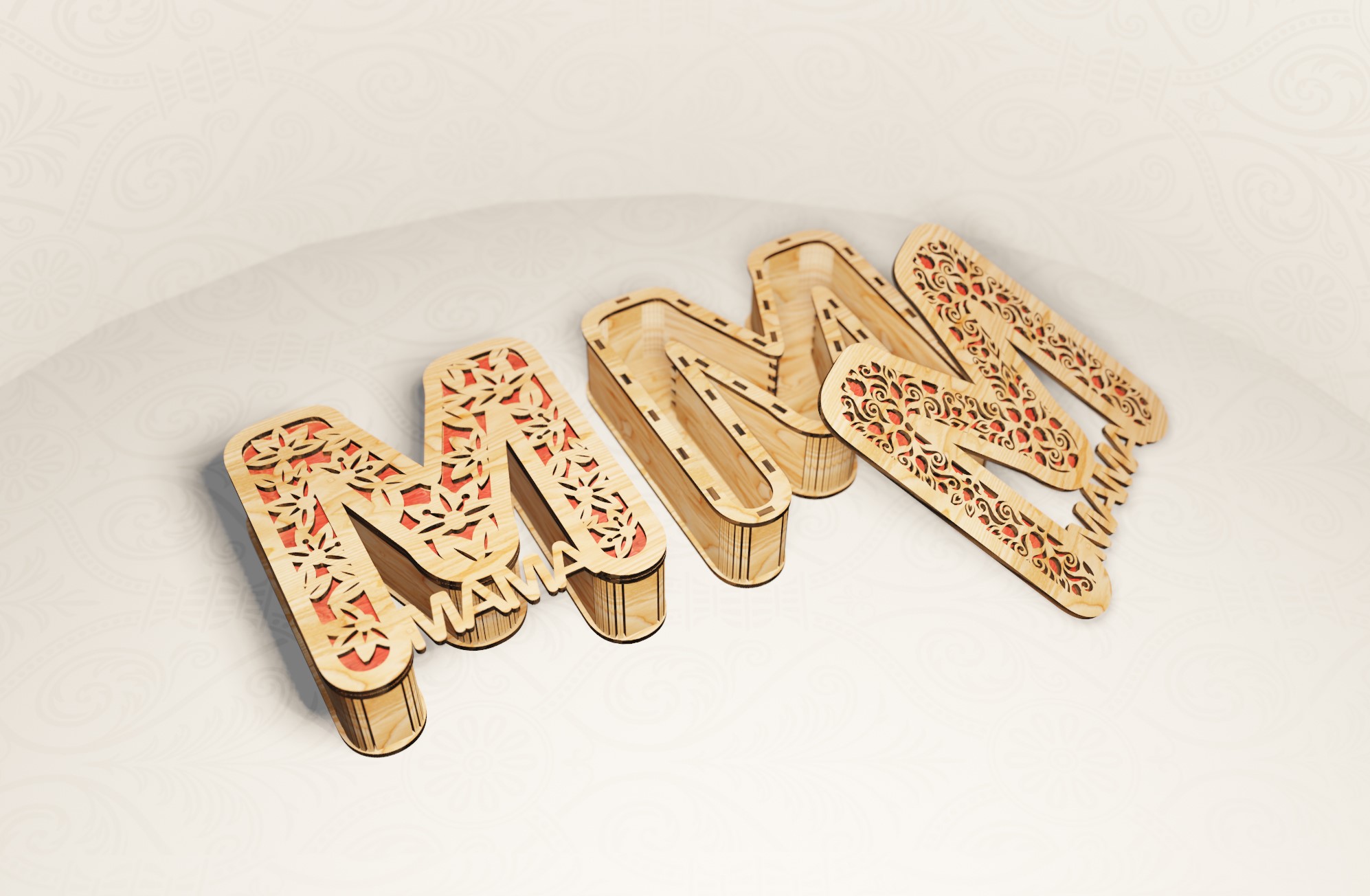 Подарочная шкатулка для мамы шкатулка в виде буквы М, макет для лазерной резки, под 3 и 4 мм толщину материала. Это векторный макет для лазерного или фрезерного резака.
