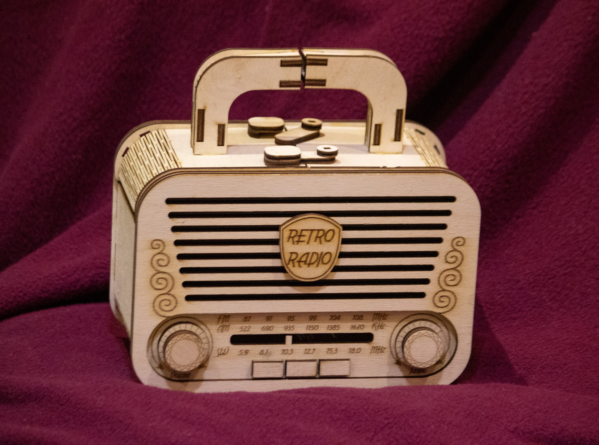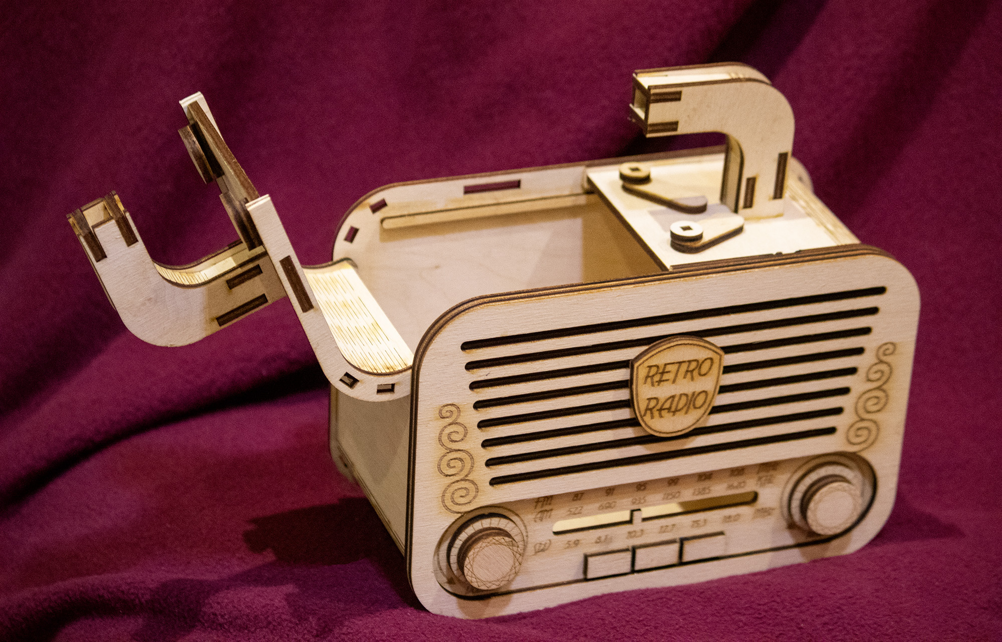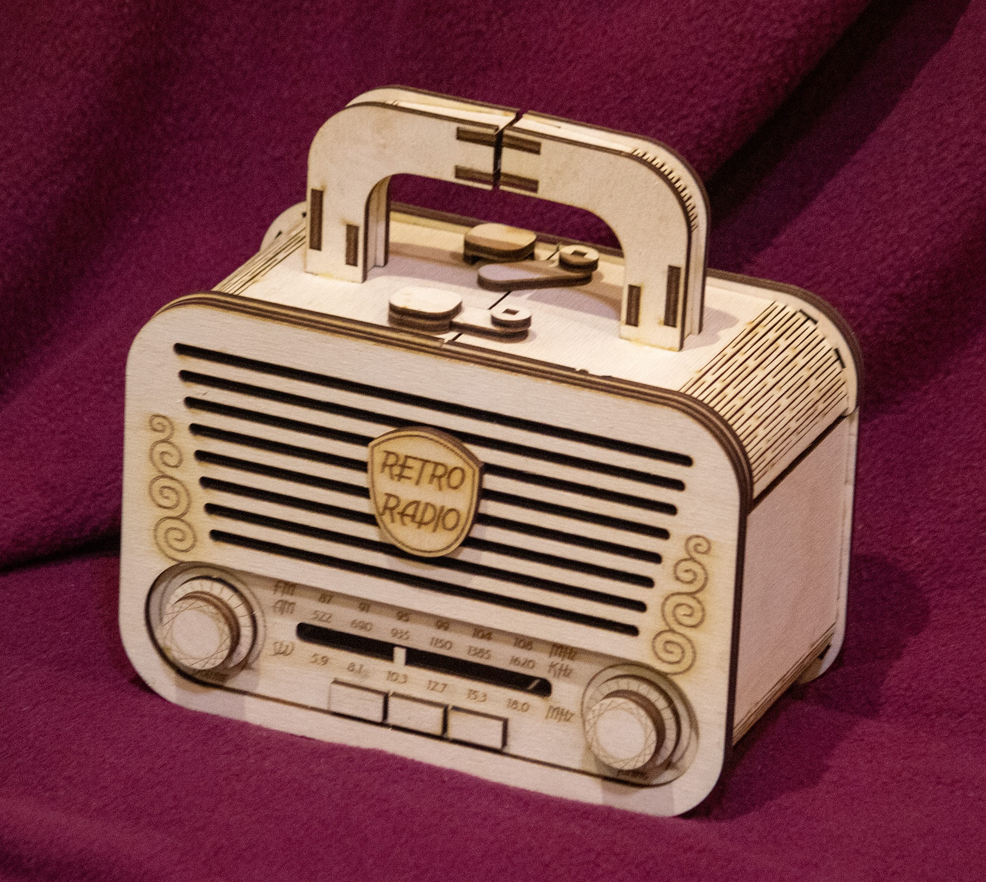 Шкатулка радио, макет для лазерной резки, под 3 мм толщину материала. Это векторный макет для лазерного или фрезерного резака.