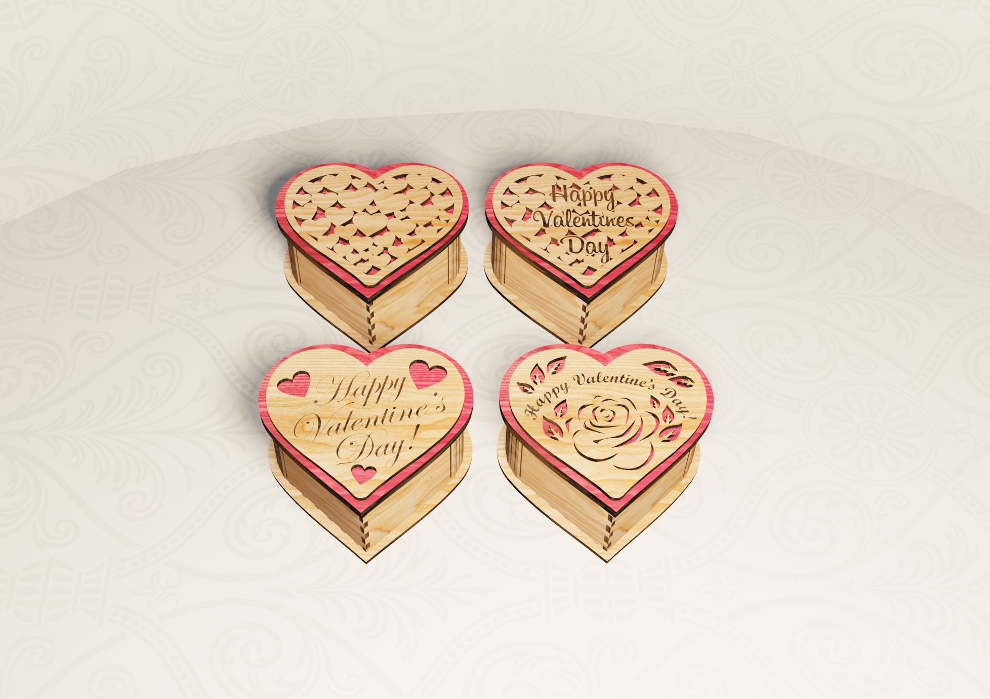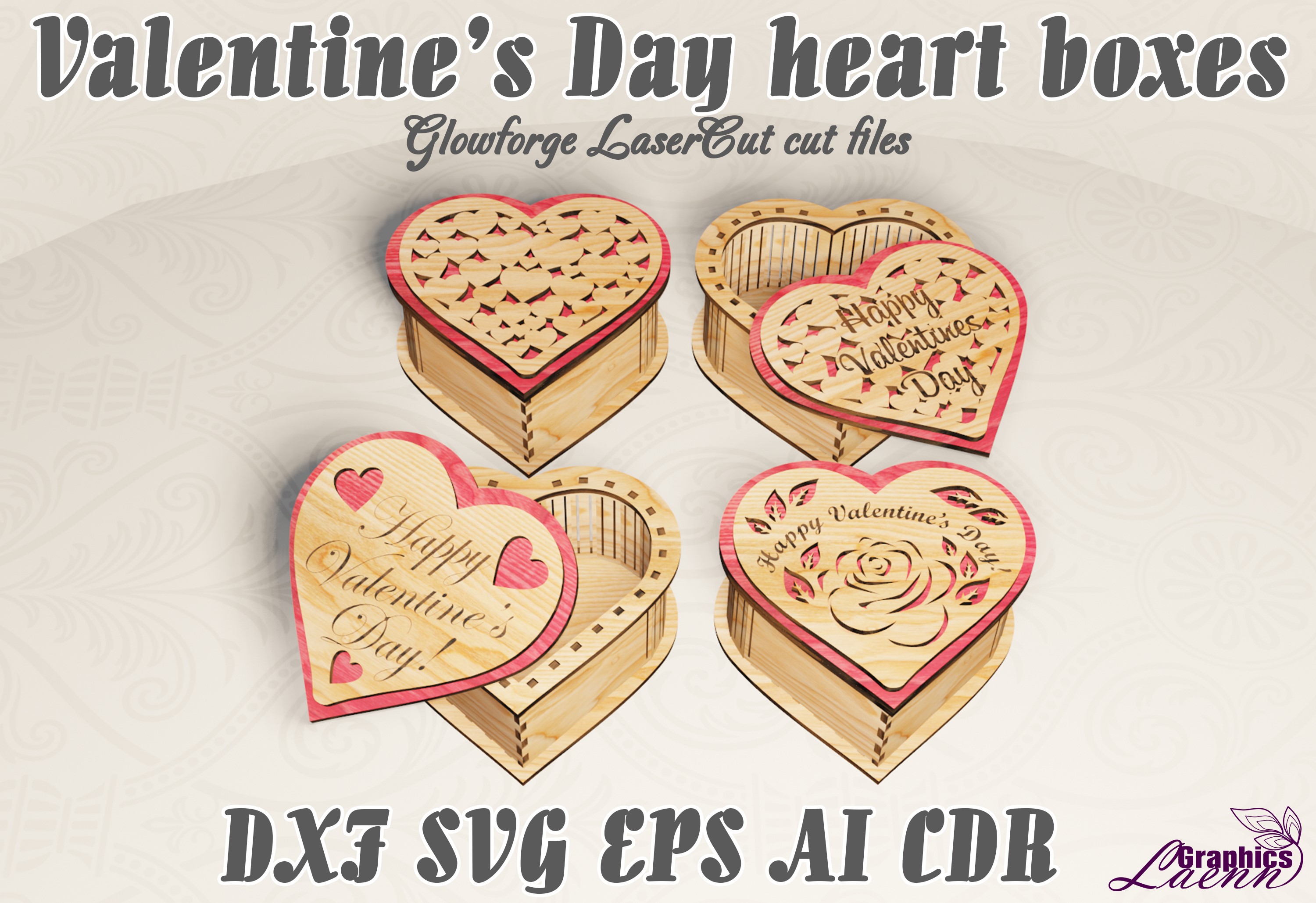 День Святого Валентина подарочная шкатулка, макет для лазерной резки, под 3 мм толщину материала. Это векторный макет для лазерного или фрезерного резака.