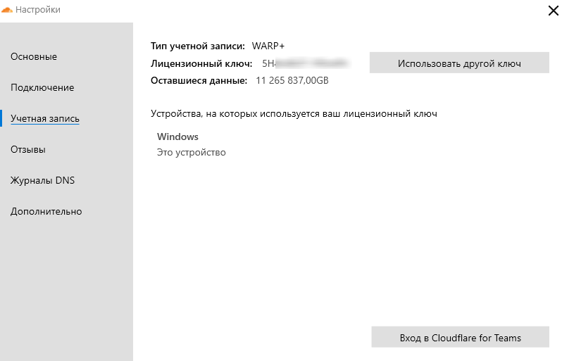 • Ключ Cloudflare WARP+