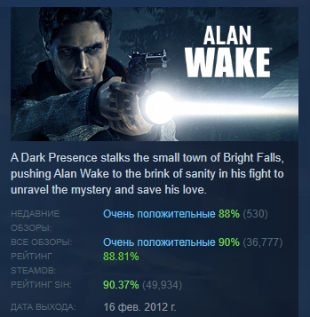Захватывающая история Алана Уэйка рассказана в лучших традициях кинематографа: гнетущая атмосфера, шокирующие повороты сюжета, яркие персонажи — будет по-настоящему страшно, но в то же время невозможно оторвать взгляд от экрана.