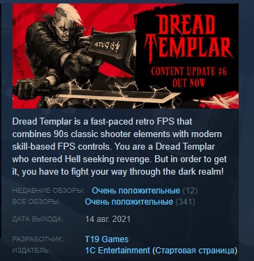 Dread Templar использует элементы как современных ретро-шутеров от первого лица, так и классических шутеров, такие как динамичный игровой процесс, лихие хедшоты и быстрые пули, чтобы вы могли наслаждаться старыми играми-стрелялками по-современному!