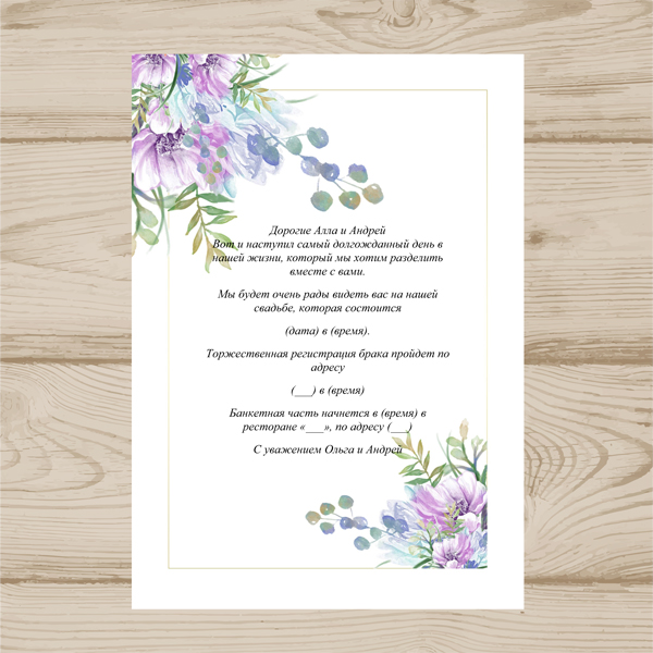 Макет приглашения был сделан в размере А4 (210х297 мм),Вы легко можете изменить размер на свой.