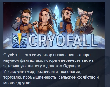 CryoFall — это симулятор выживания в жанре научной фантастики, который перенесет вас на затерянную планету в далеком будущем. Исследуйте мир, развивайте технологии, торговлю, промышленность, сельское хозяйство и многое другое!