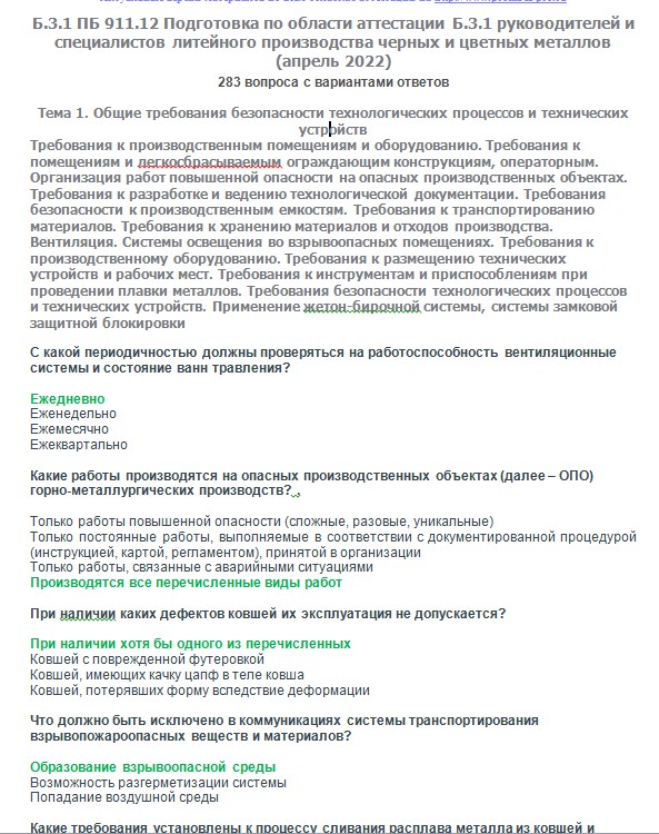 Вопросы с ответами к курсам ОКС-Олимп Б.3.1 ПБ 911.12 (апрель 2022) Подготовка по области аттестации Б.3.1 руководителей и специалистов литейного производства черных и цветных металлов