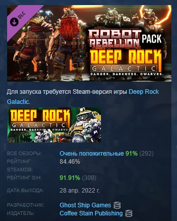 DLC ДОПОЛНЕНИЕ К ИГРЕ Внимание! Для запуска требуется Steam-версия игры Deep Rock Galactic