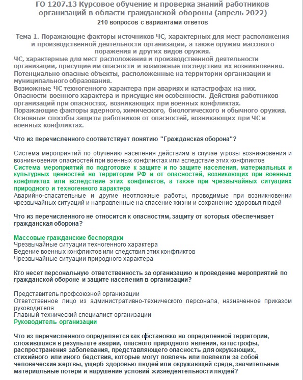 Вопросы с ответами к курсам ОКС-Олимп ГО 1207.13 (апрель 2013) Курсовое обучение и проверка знаний работников организаций в области гражданской обороны