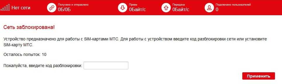 6. Введите полученный код разблокировки сети в поле для ввода кода в web-интерфейсе роутера. Если вы ввели код без ошибок, устройство сразу зарегистрируется в сети оператора, SIM карту которого вы установили.