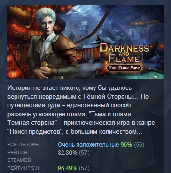 История не знает никого, кому бы удалось вернуться невредимым с Тёмной Стороны… Но путешествие туда – единственный способ разжечь угасающее пламя. "Тьма и пламя. Тёмная сторона" – приключенческая игра в жанре "Поиск предметов", с большим количеством увлекательных мини-игр и головоломок, незабываемых персонажей и...