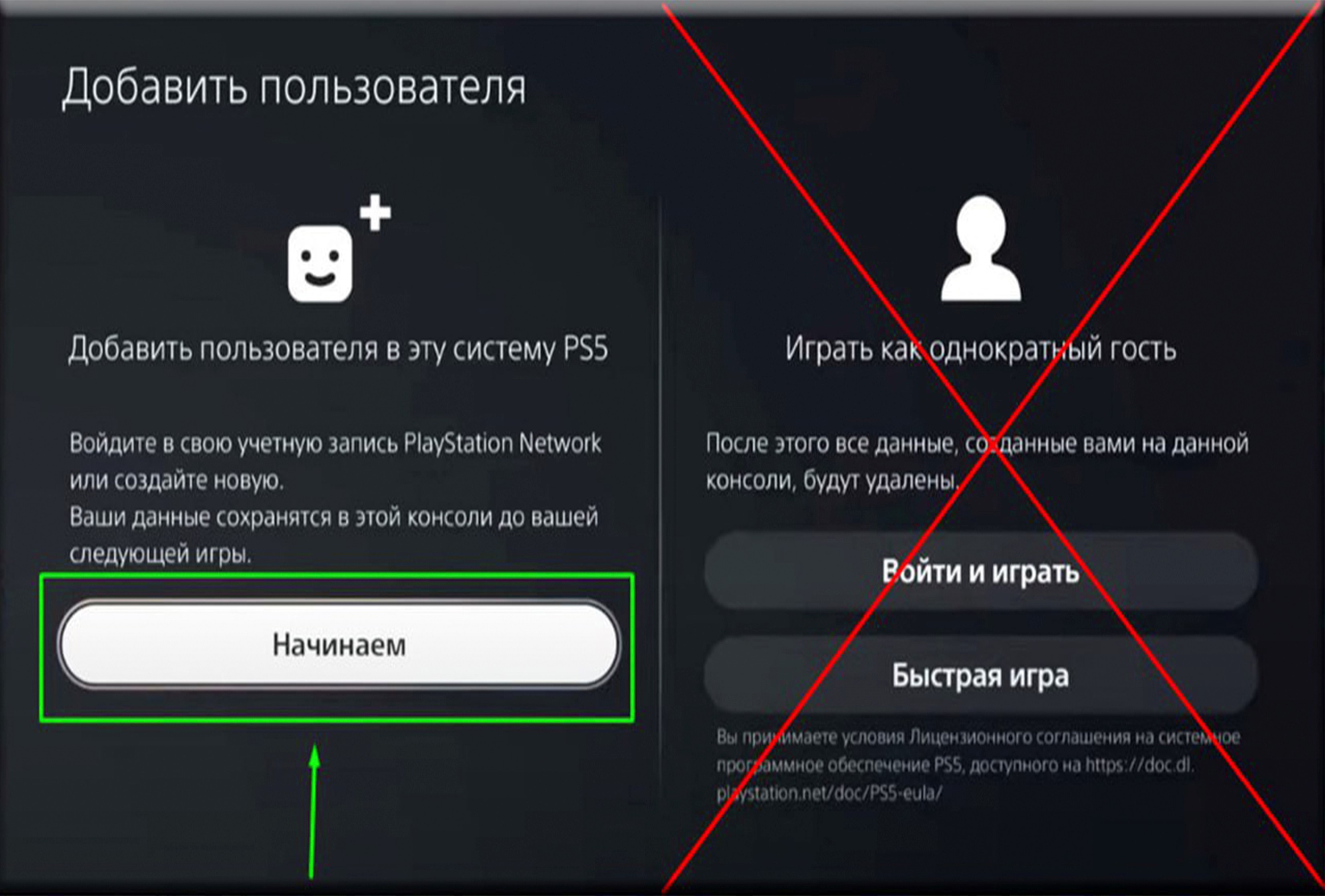 ❖Выбираем ➔ «НАЧИНАЕМ» ! (не как гостя!) ➔ «Принимаем лицензионное соглашение»
