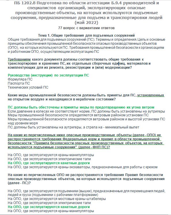 Вопросы с ответами к курсам ОКС-Олимп ПБ 1202.8 (май 2022) Подготовка по области аттестации Б.9.4 руководителей и специалистов организаций, эксплуатирующих опасные производственные объекты, на которых используются подъемные сооружения, предназначенные для подъема и транспортировки людей