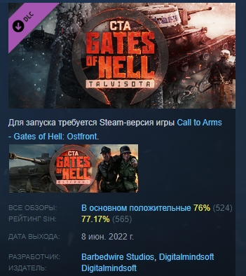 ДОПОЛНЕНИЕ К ИГРЕ. Внимание! Для запуска требуется Steam-версия игры Call to Arms - Gates of Hell: Ostfront