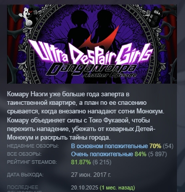Комару Наэги уже больше года заперта в таинственной квартире, а план по ее спасению срывается, когда внезапно нападают сотни Монокум. Комару объединяет силы с Токо Фукавой, чтобы пережить нападение, убежать от коварных Детей-Монокум и раскрыть тайны города.
