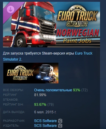 https://store.steampowered.com/app/347190/Euro_Truck_Simulator_2__Norwegian_Paint_Jobs_Pack/