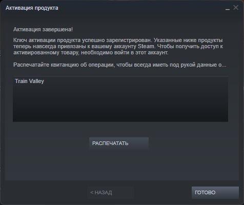Сразу после оплаты вы получите лицензионный ключ Steam для активации игры Train Valley.