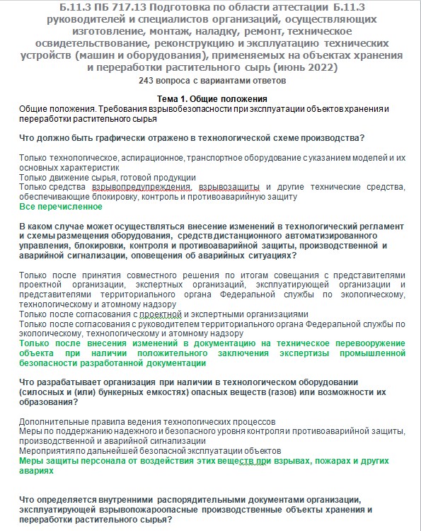 Вопросы с ответами к курсам ОКС-Олимп Б.11.3 ПБ 717.13 (июнь 2022) Подготовка по области аттестации Б.11.3 руководителей и специалистов организаций, осуществляющих изготовление, монтаж, наладку, ремонт, техническое освидетельствование, реконструкцию и эксплуатацию технических устройств (машин и оборудования), применяемых на объектах хранения и переработки растительного сырья