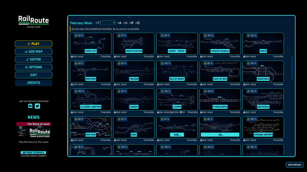 В Rail Route вы будете проектировать, строить, модернизировать и автоматизировать свою железнодорожную сеть на картах, основанных на реальных городах мира. Управляйте движением поездов, расширяя и улучшая свою сеть!