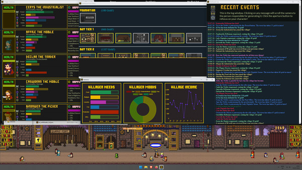 Desktopia is a city-builder game which simulates an evolving, medieval-esque village along the bottom of your desktop, allowing you to work, watch, or browse something else while you play.