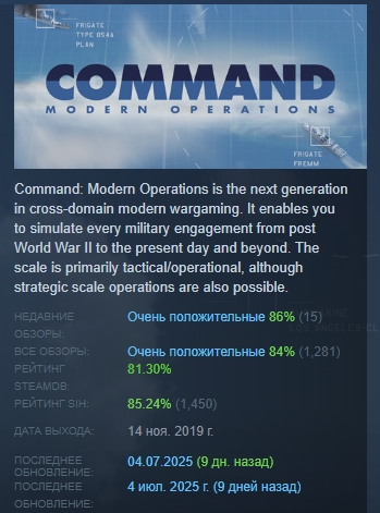 https://store.steampowered.com/app/1076160/Command_Modern_Operations/